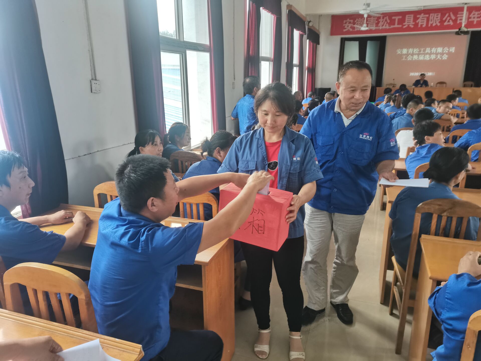 2020年7月28日,公司工會(huì)在大會(huì)議室召開會(huì)員大會(huì),會(huì)議由第二屆工會(huì)主席劉曉峰同志主持,會(huì)上儲(chǔ) 哲同志宣讀了選舉辦法,全體會(huì)員以舉手表決的方式通過選舉辦法和總監(jiān)票人名單,并以無(wú)記名投票的方式選舉產(chǎn)生了第三屆工會(huì)委員會(huì),選舉王曉建同志為主席,儲(chǔ) 哲、儲(chǔ)成鳳、儲(chǔ)德江、陳尊岳四同志為委員。